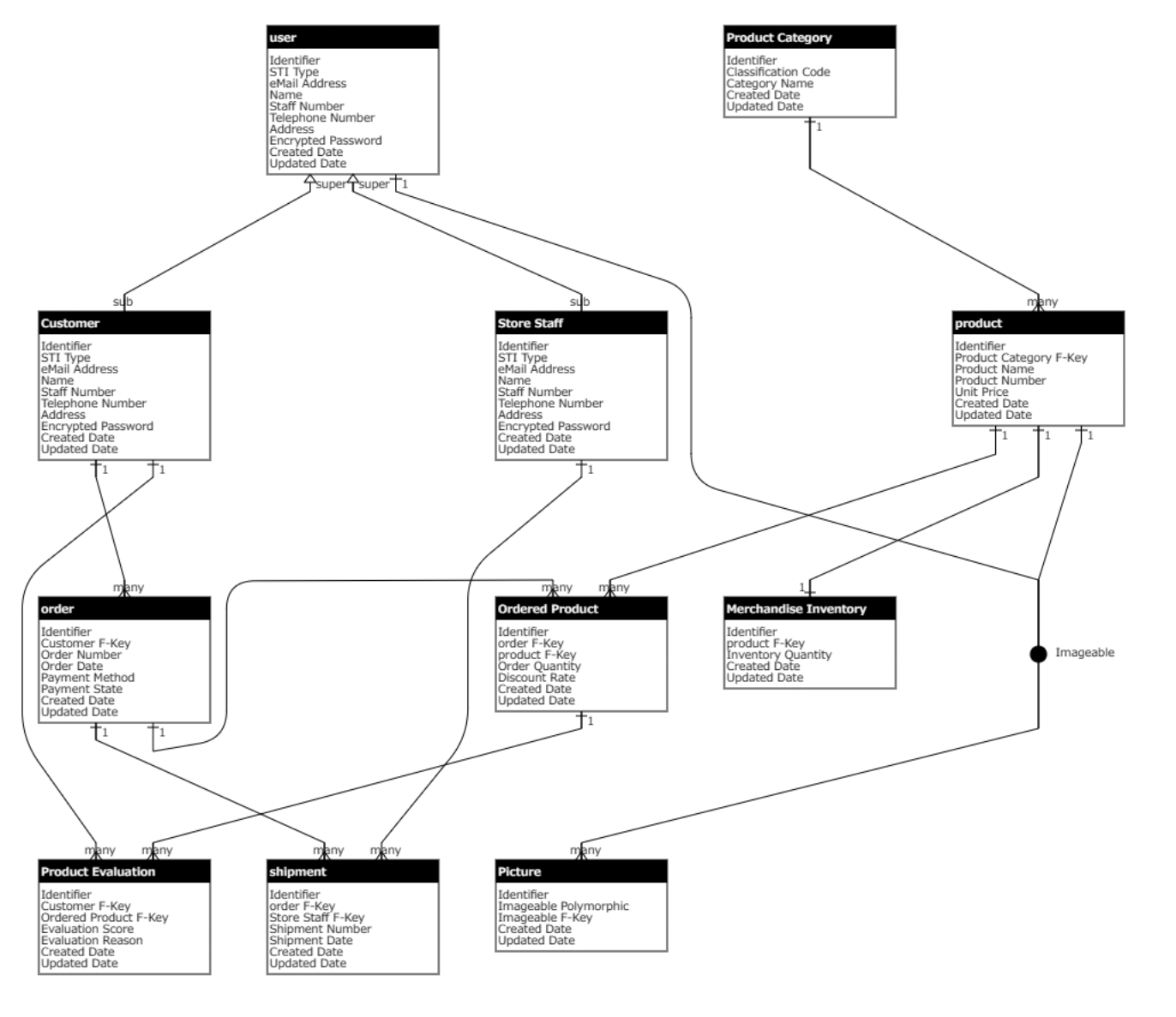 This tool can generate ER diagrams by defining target relationships. In other words, by registering targets and associating between targets, such ER diagrams can be automatically generated.